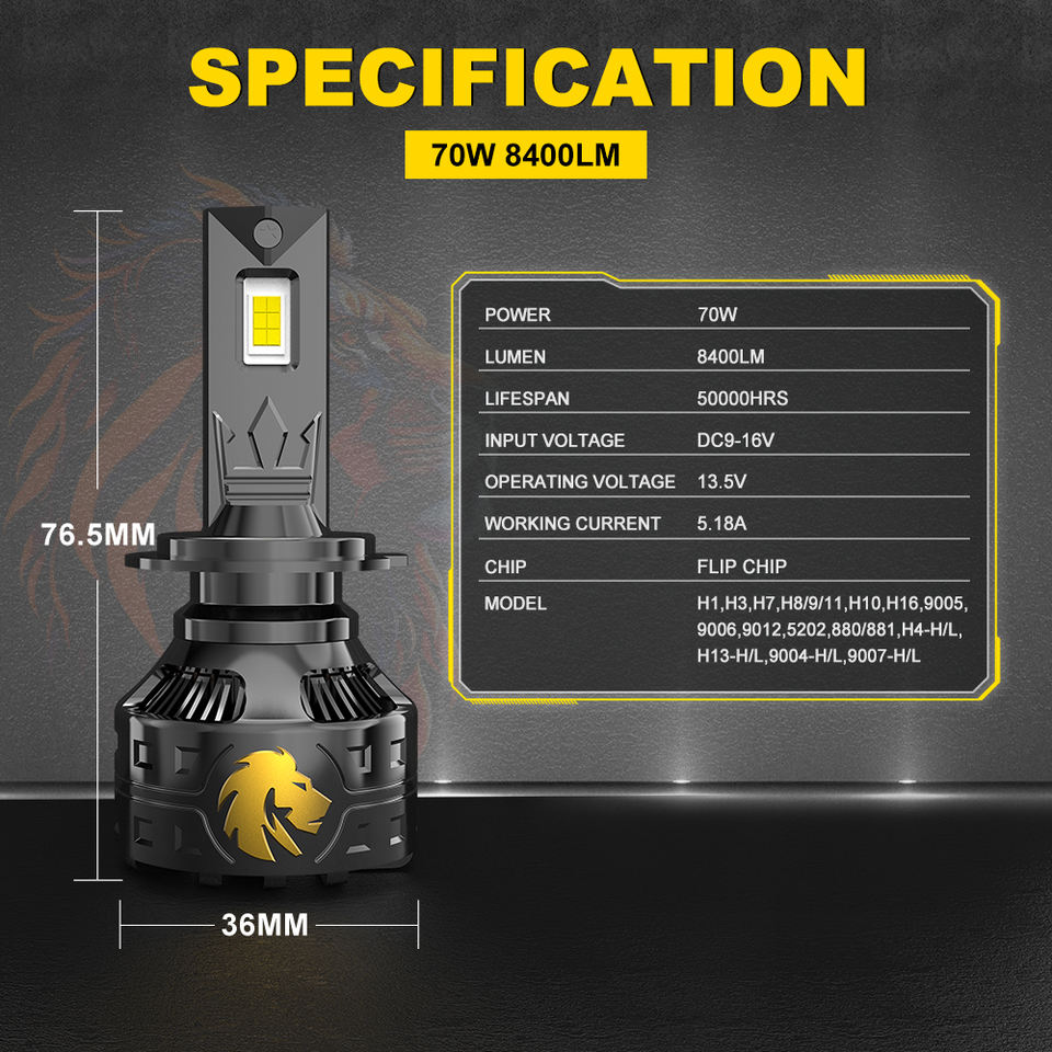 Lumière:8400LM/Ampoule, 16800 Lumens/Paire