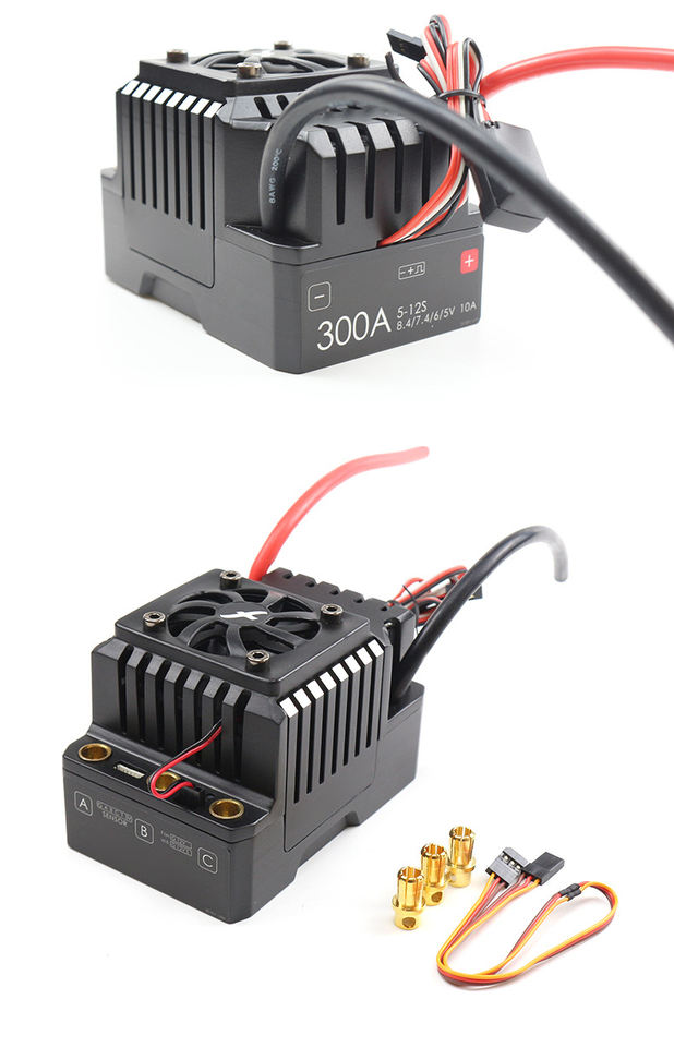ESC sans balais étanche haute puissance 300A 5-12S avec boîtier en plastique pour voitures RC, bateaux robustes et systèmes de chars robotiques