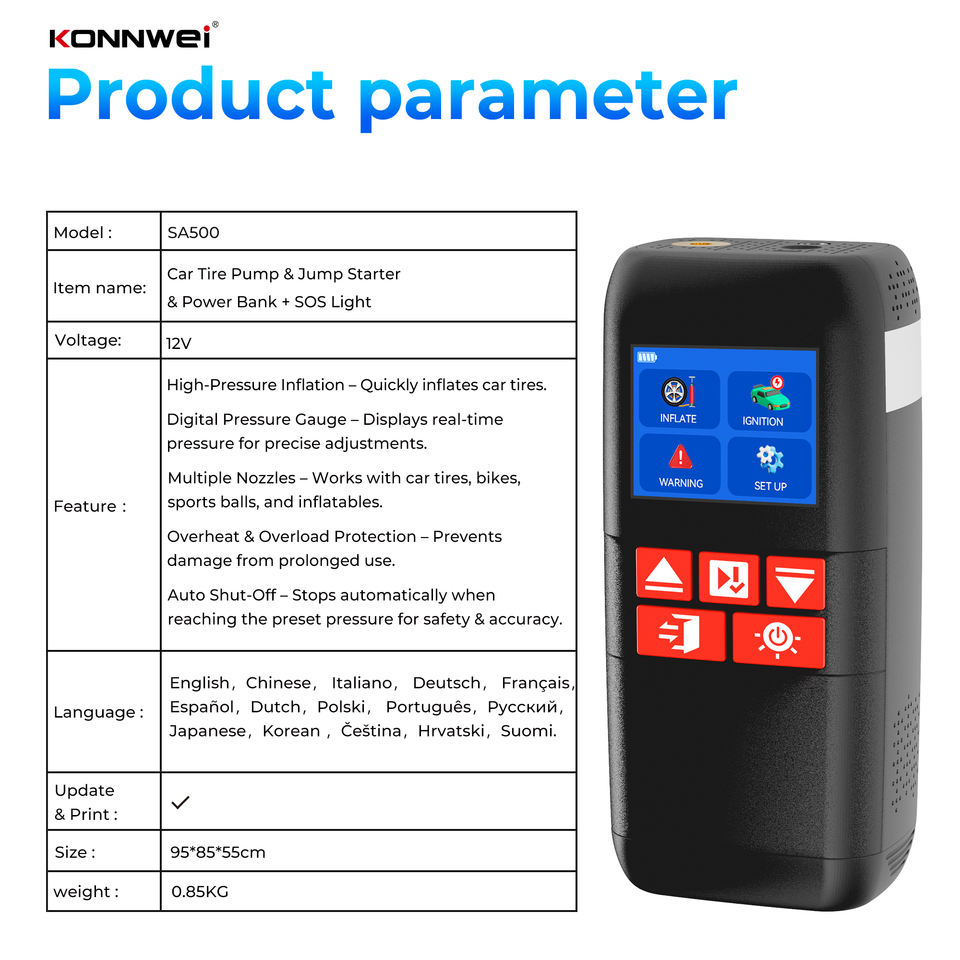 Démarreur de saut de voiture haute puissance batterie au Lithium Booster démarreur de saut avec gonfleur 12v démarreur de saut de voiture avec compresseur d'air SA500