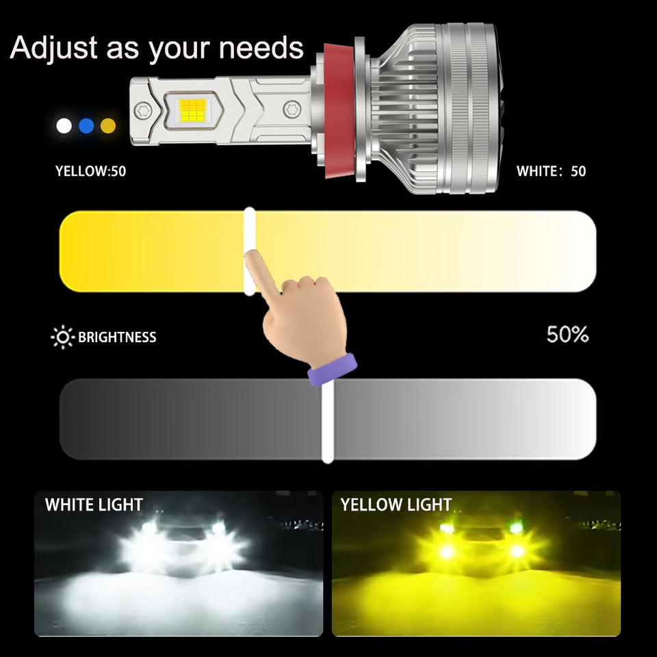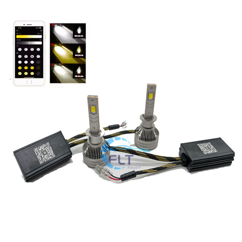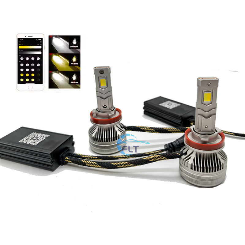 Haute puissance double couleur contrôlée par application multi-modes H4 H13 H1 H7 H11 9005 9006 9012 ampoule de phare Led pour voitures 6000k température