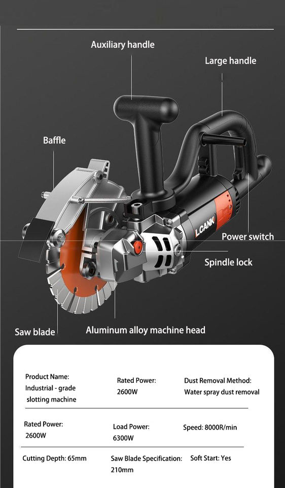 Machine à rainurer murale sans brosse à courant alternatif électrique haute puissance chasseur de mur en béton et outil de coupe d'eau Machine à rainurer filaire