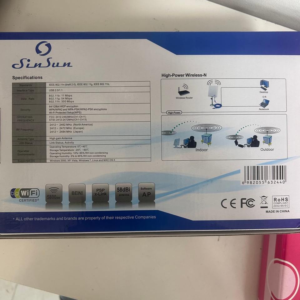 Adaptateur WiFi USB externe haute puissance, antenne à gain élevé 58dBi, adaptateur réseau sans fil 802.11b/g/n pour PC - En stock