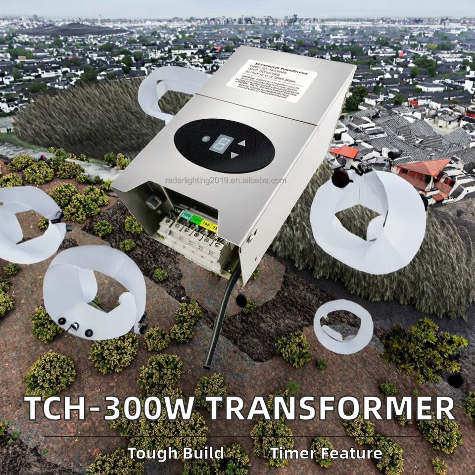 Transformateur d'éclairage extérieur haute puissance basse tension avec contrôle de minuterie photocellule, résistant aux intempéries pour les lampes halogènes LED de paysage
