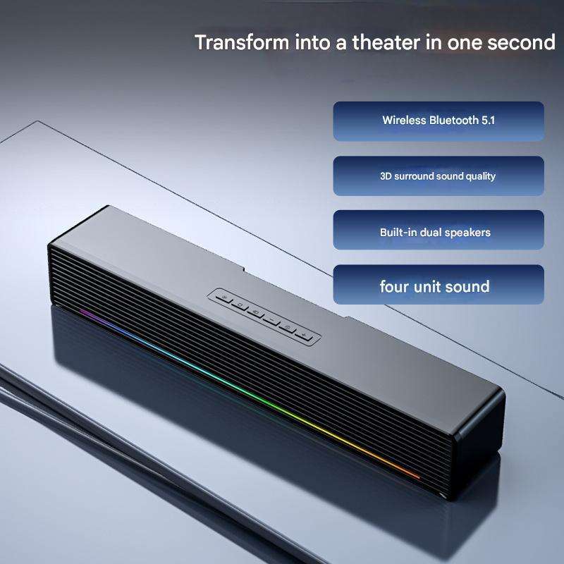 Haut-parleur sans fil Blue-tooth de barre de son stéréo haute puissance avec basses améliorées pour les jeux Tv Computer Home Theater RGB Lights FMradio
