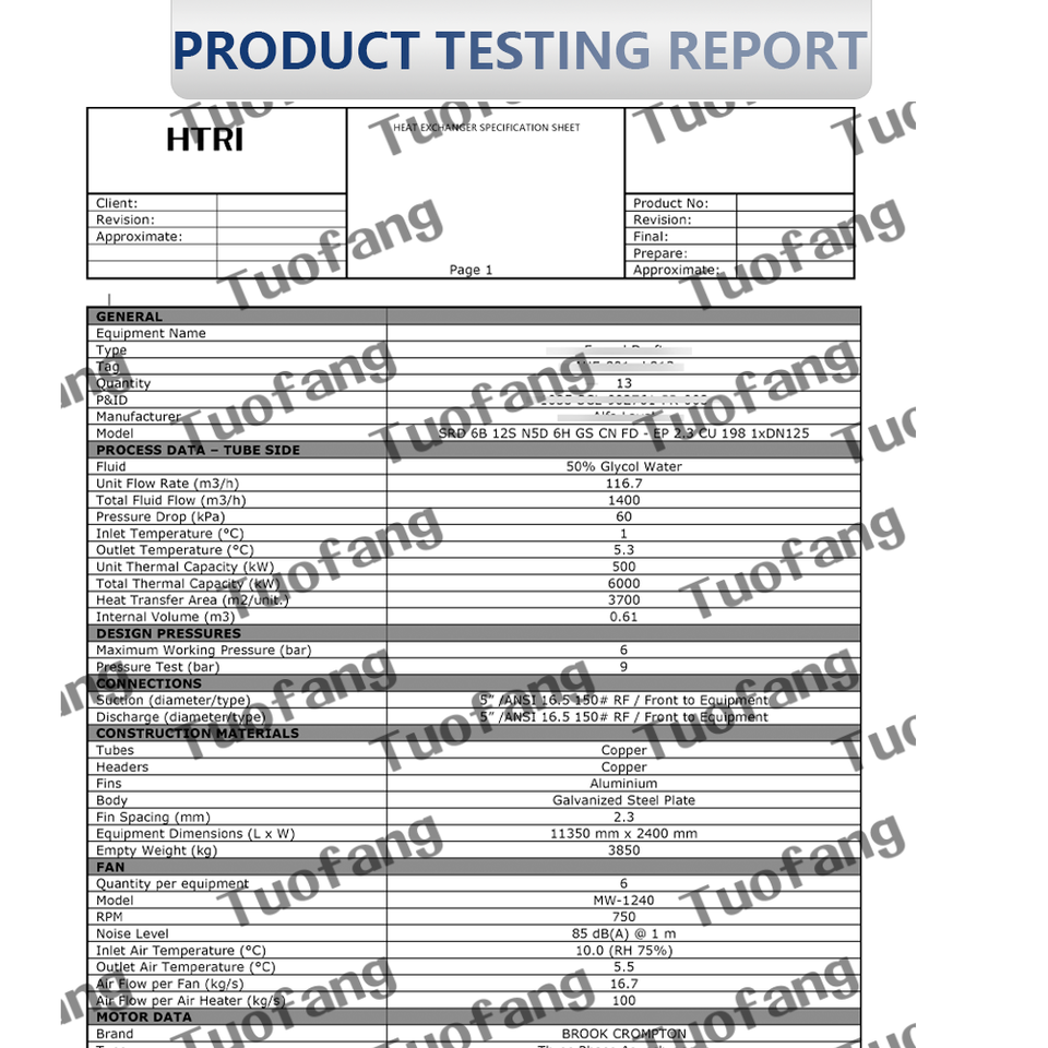 Matériau du tube:Cuivre, SS, Titane, Cu-Ni