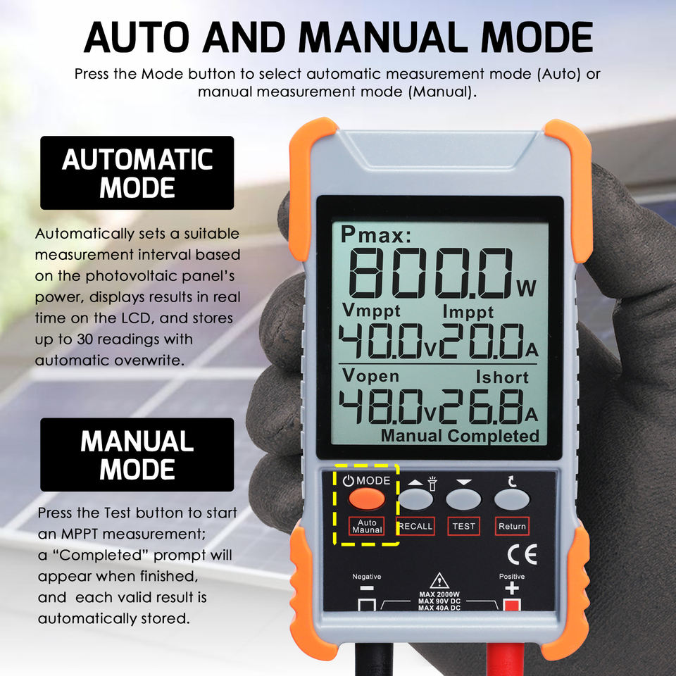 Compteur de puissance solaire MPPT haute précision 2000W, multimètre pour panneau photovoltaïque 3V-90V 40A avec écran LCD et batterie rechargeable 1250mAh