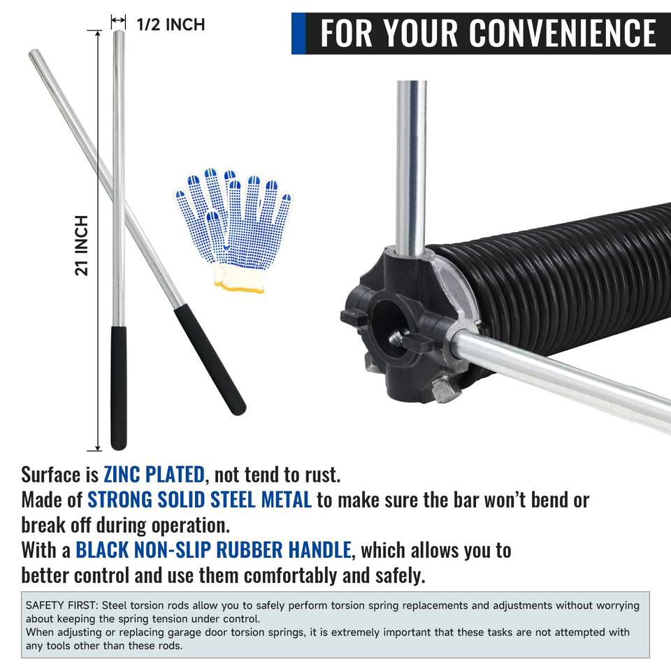 High Precision Electrophoresis Pair of 0.262X2-5/8"X35.5" Garage Door Torsion Springs Set Non-Slip Winding Bars Gloves