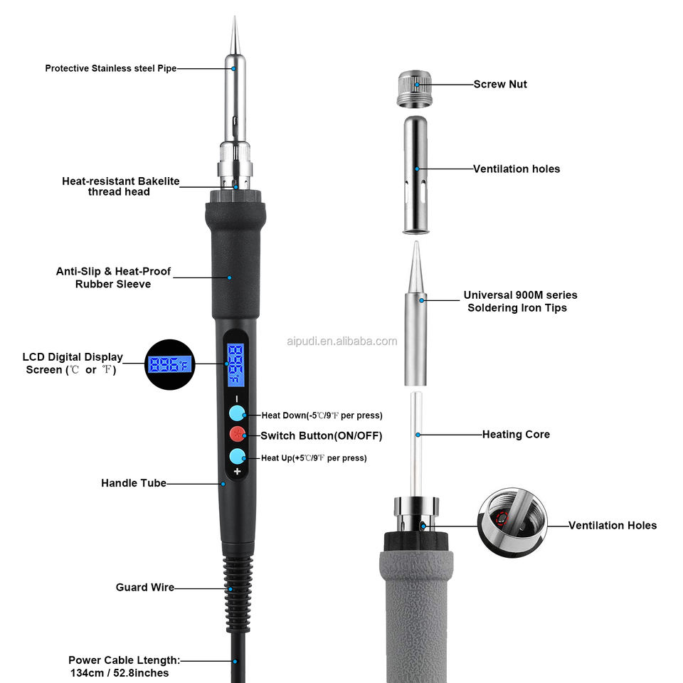 Fers à souder électriques à température constante de haute précision professionnels avec écran LCD numérique 60W avec embouts de soudure 900M-T