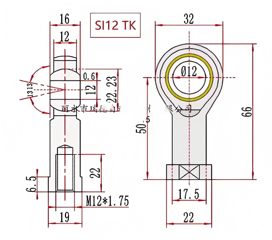Roulement à rotule haute précision SI12TK, filetage femelle droit, joint Heim