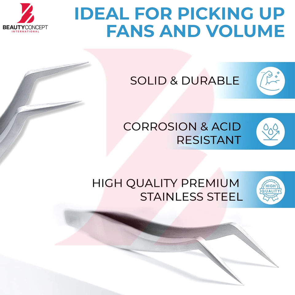 Pince à cils incurvée en acier inoxydable de haute précision, pince à volume anti-magnétique argent mat pour usage professionnel des cils