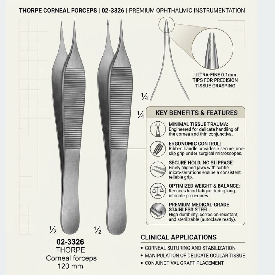 Nom du produit:Pinces cornéennes Thorpe 120 mm