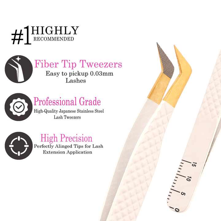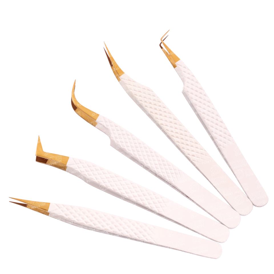 Pince à cils de haute précision à pointes fermées, poignée diamantée, pointe blanche, dorée, antistatique
