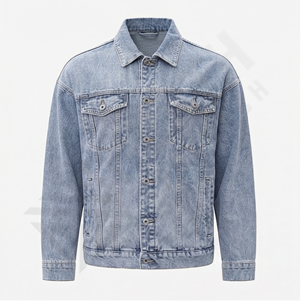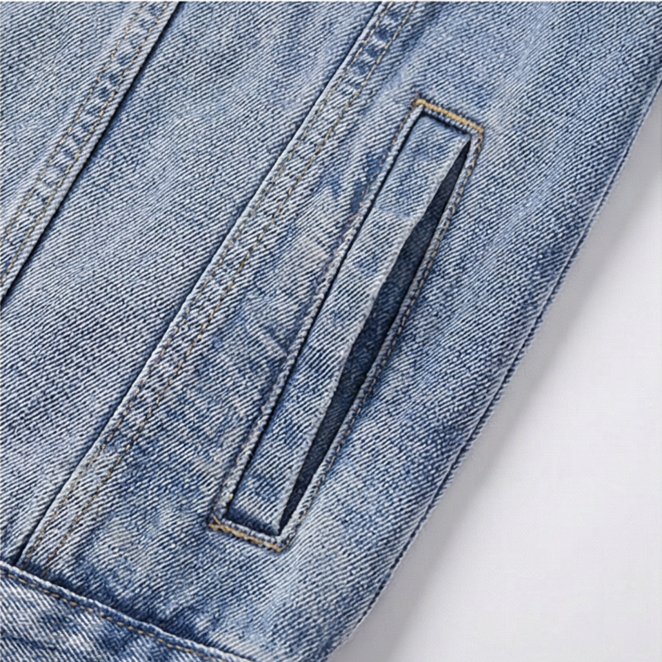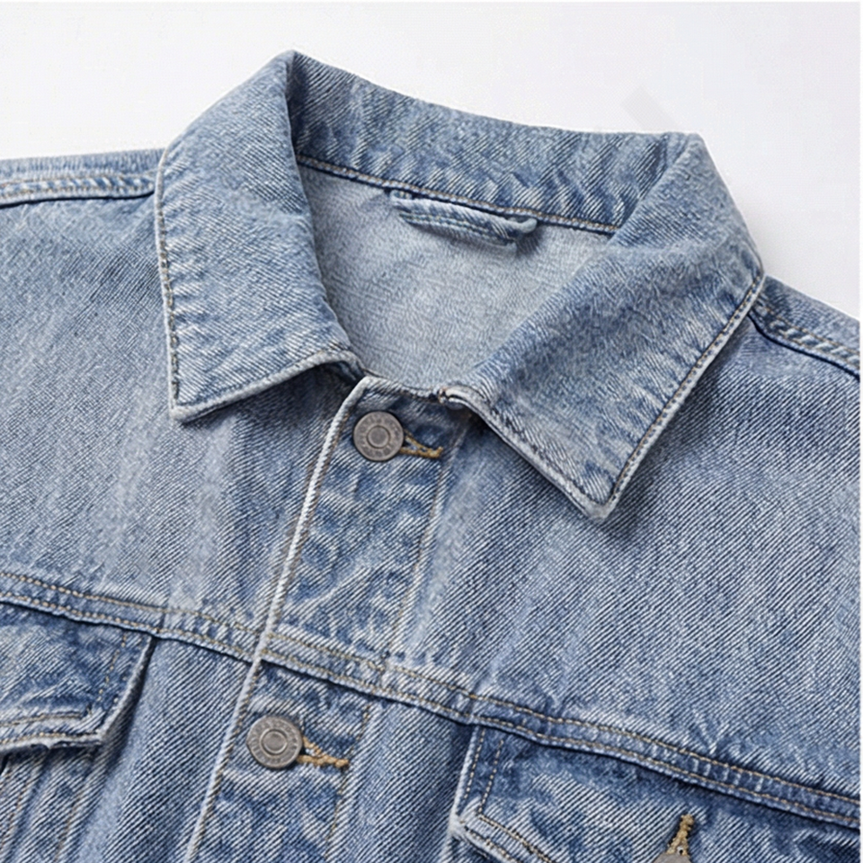Veste en jean personnalisée haut de gamme pour homme avec col montant et logo frontal, vêtement d'extérieur respirant, tailles et couleurs personnalisables