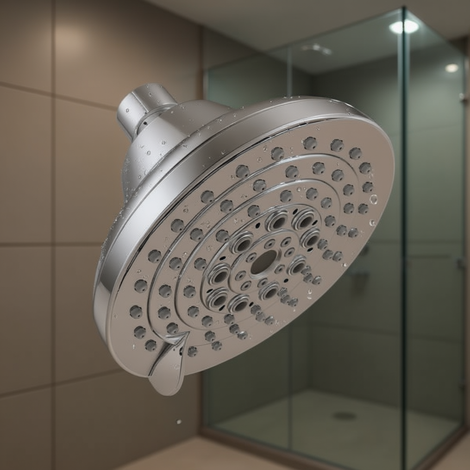 Pommeau de Douche Fixe Chromé Haute Pression 5 Pouces avec 6 Jets Réglables et Buses Anti-Colmatage – Accessoire de Salle de Bain