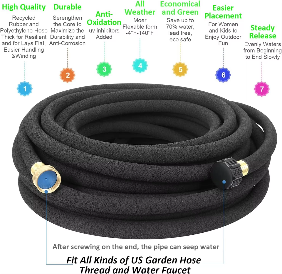High Pressure Durable Soaker Hose Irrigation Pipe Microporous DripTubing with Solid Brass Connectors 100m 6mm Garden Use