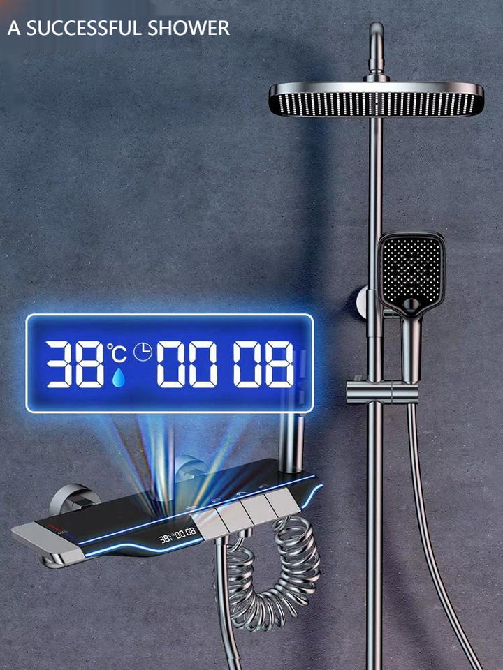 Pommeau de douche en verre illuminé par LED à haute pression robinets de douche de bain chromés modernes