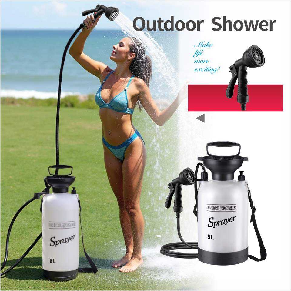 Kit de pompe de douche portable haute pression pour l'extérieur avec presse manuelle et tuyau amovible pour le camping, la plage, le jardinage, le lavage de voiture