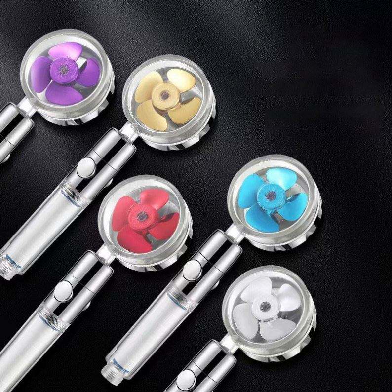 Filtre de douche haute pression, économie d'eau, débit 360° ° Petit ventilateur rotatif ABS avec buse de pulvérisation de pluie pour salle de bain