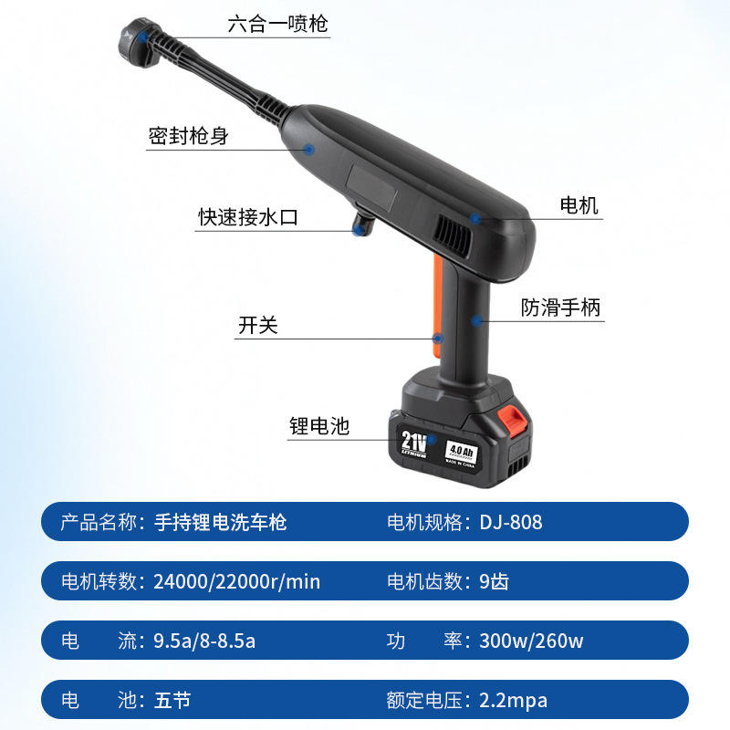 Pulvérisateur haute pression sans fil à batterie lithium, kit d'outils de lavage de voiture, jet réglable, conception multi-buses