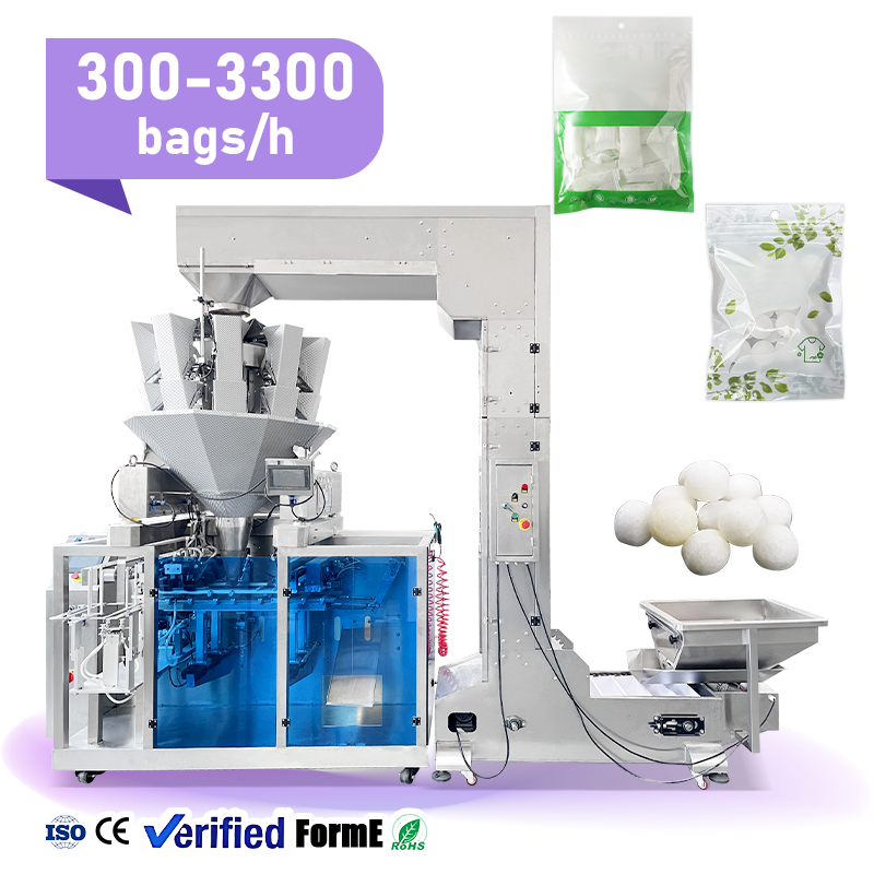 Machine d'emballage automatique haute productivité pour le remplissage et la fermeture de granulés, sachets en plastique, sachets à fond plat, sachets à fermeture éclair et Doypack