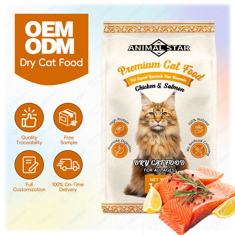 Nourriture sèche pour chats à haute teneur en protéines, poulet et saumon, faible en gras, avec des bienfaits pour la santé digestive, pour toutes les étapes de vie