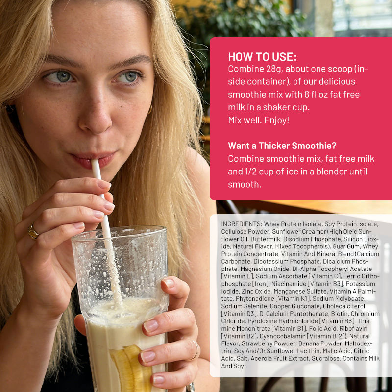 Mélange de smoothie substitut de repas riche en protéines, saveur fraise banane crème, poudre pour la perte de poids, 20g de protéines, poudre de milkshake