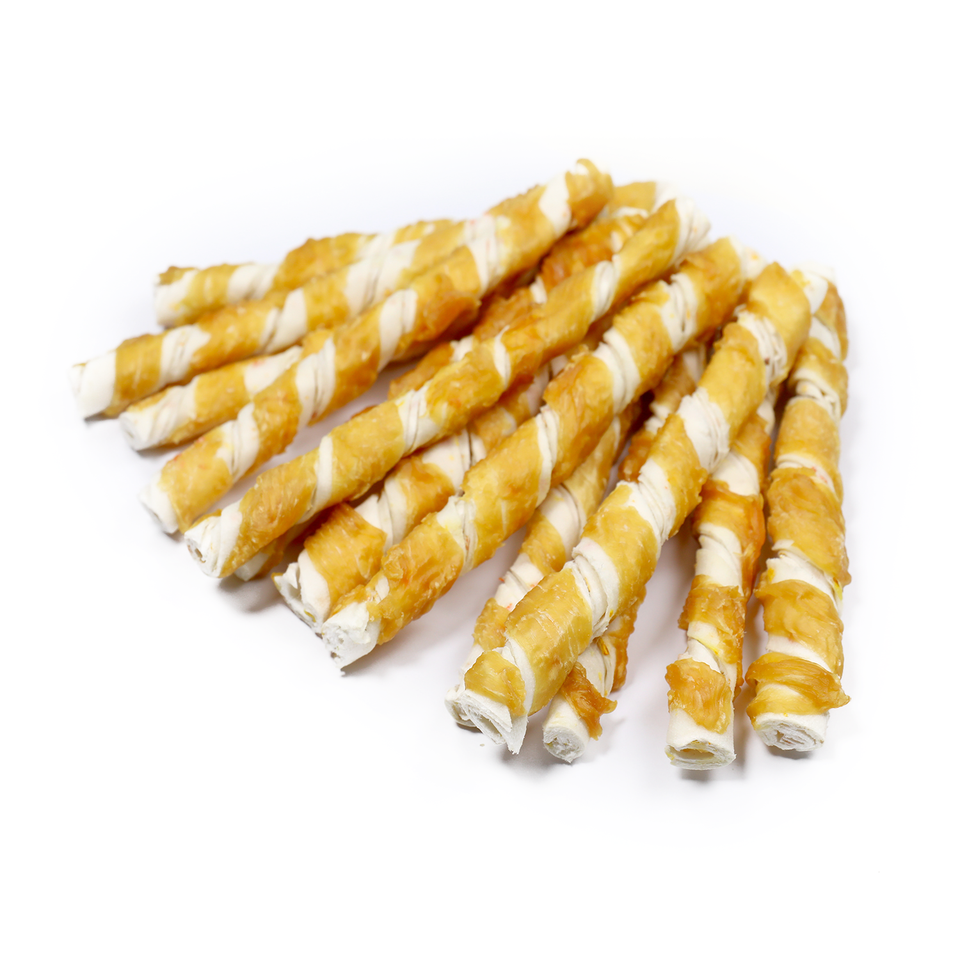 5 "saveur de potiron et de carotte de torsion de cuir crue de collagène enveloppée avec du poulet