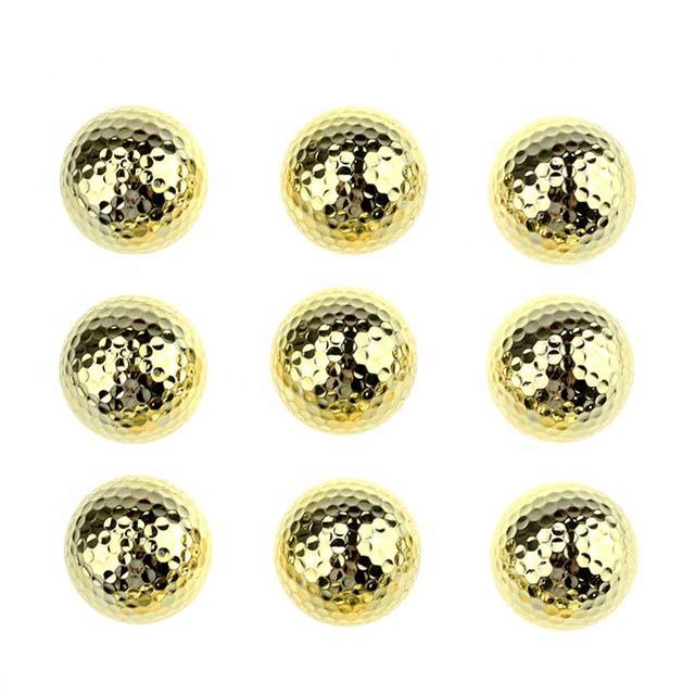 Balles de golf plaquées or de haute qualité, deux pièces, à fort taux de rebond, idéales comme cadeau, avec un taux de résilience élevé