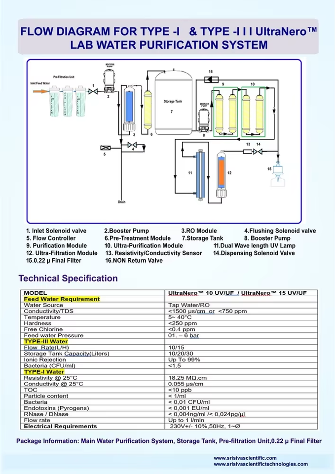 Système de purification d'eau de laboratoire haute pureté pour analyse HPLC, sortie d'eau ultra pure, pompe de filtration multi-étapes, garantie 1 an