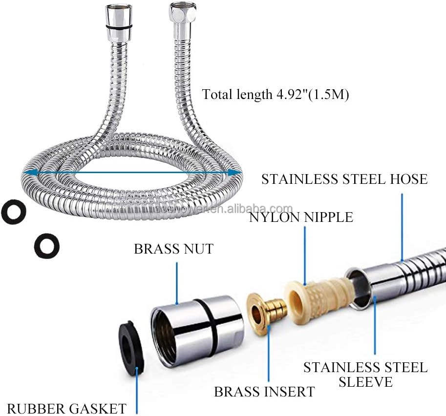 Tuyau de douche flexible moderne en acier inoxydable de haute qualité 1,5 m WARS ACS Test Spa pour salle de bain