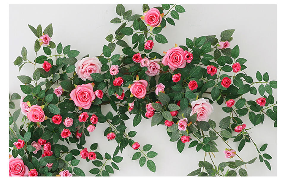 Rose grimpante artificielle en soie de haute qualité, 1,9 m, suspendue, faite à la main, fleurs douces roses, rouges et blanches pour la décoration de la maison, du jardin et des mariages