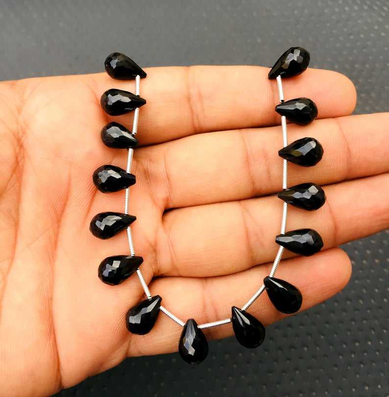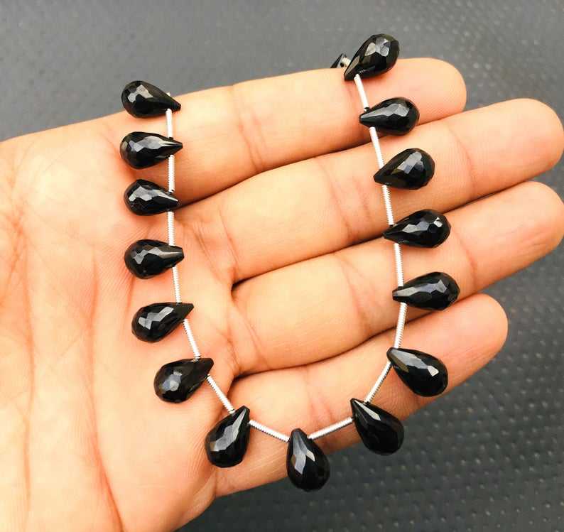 Haute qualité 1 brin naturel noir spinelle pierre précieuse à facettes en forme de larme perles Briolette pour la fabrication de bijoux faits à la main