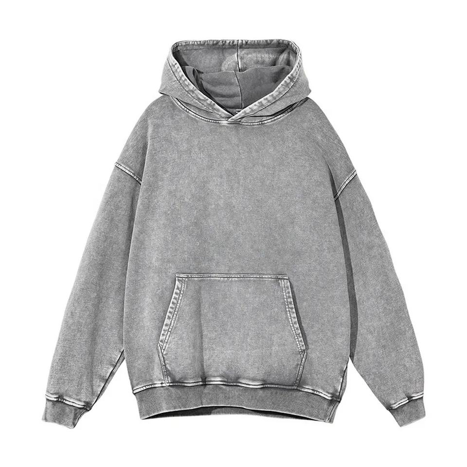 Sweat à capuche lavé à l'acide 100% coton de haute qualité High Street Series Washing Old Sweater Stone Washed Hoodie