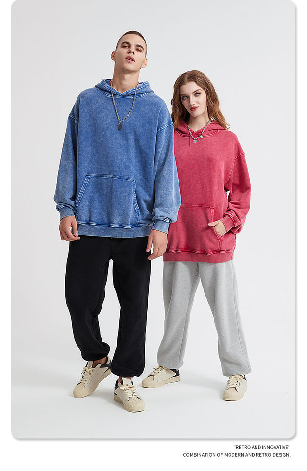 Sweat à capuche 100% coton de haute qualité, délavé à l'acide, série High Street, effet vieilli, délavé à la pierre, style vintage