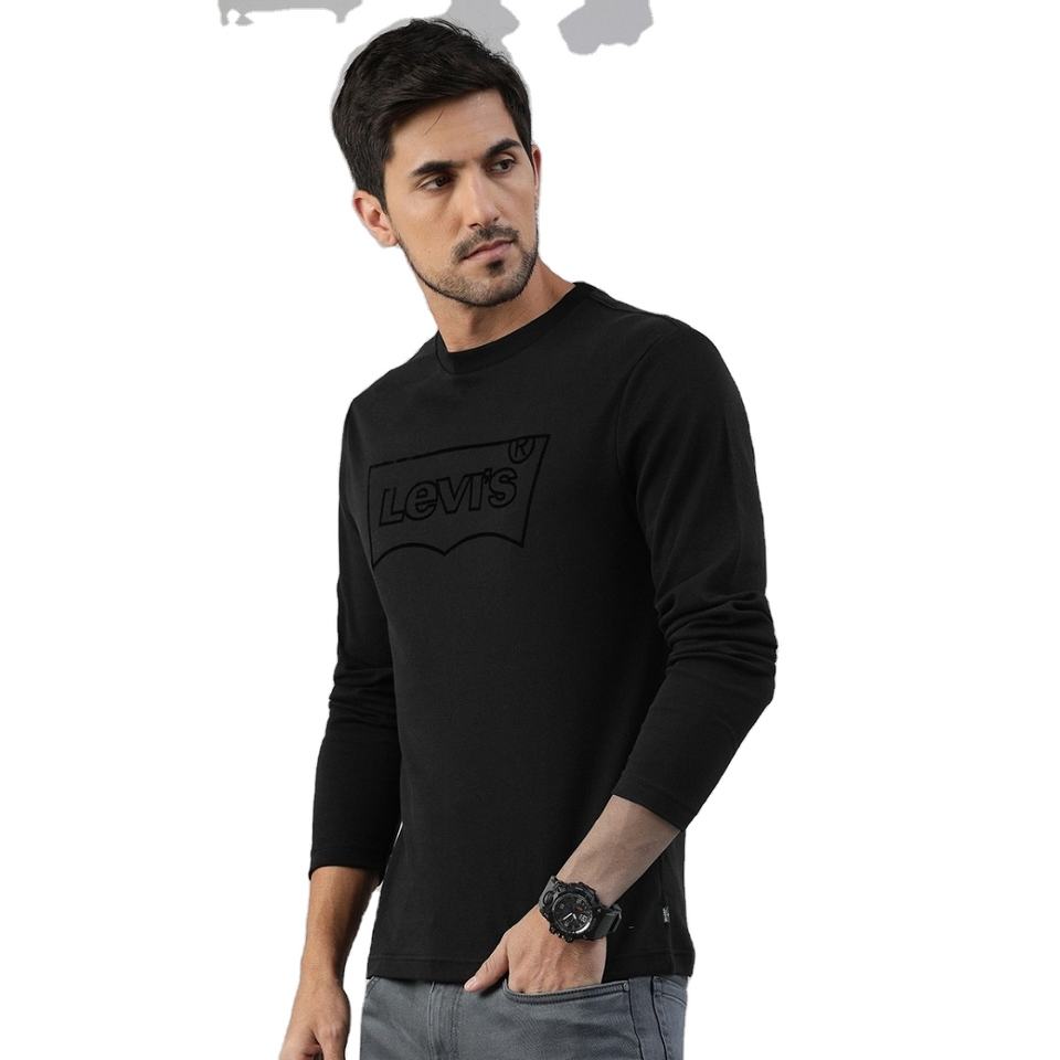 T-shirt à manches longues et col rond pour homme, haut de haute qualité, 100% coton, coupe ajustée, de couleur unie, avec le meilleur prix du Bangladesh