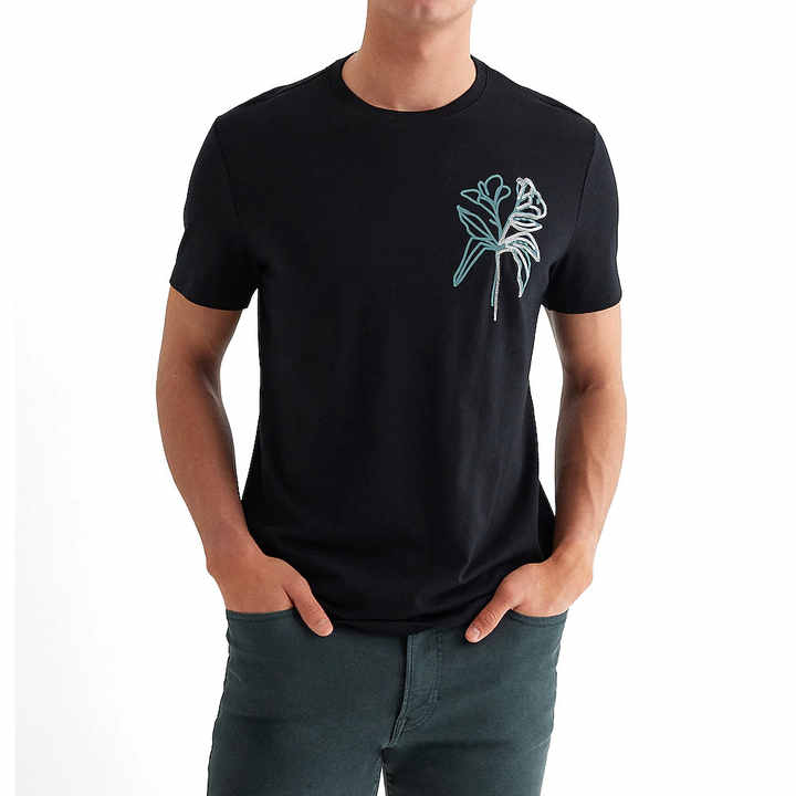 Haute qualité 100% coton surdimensionné en détresse broderie T-Shirts microfibre lavée à l'acide avec motif solide Costume Logo stock