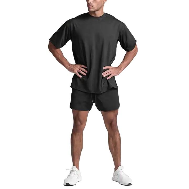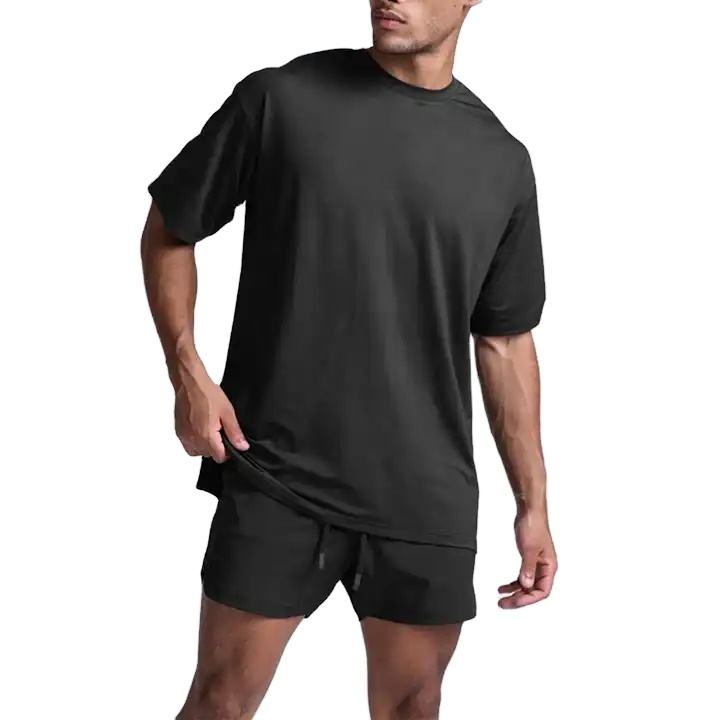 T-shirt de sport streetwear pour homme 100 % coton de haute qualité, coupe oversize, noir uni, séchage rapide et écologique, faible MOQ 2026