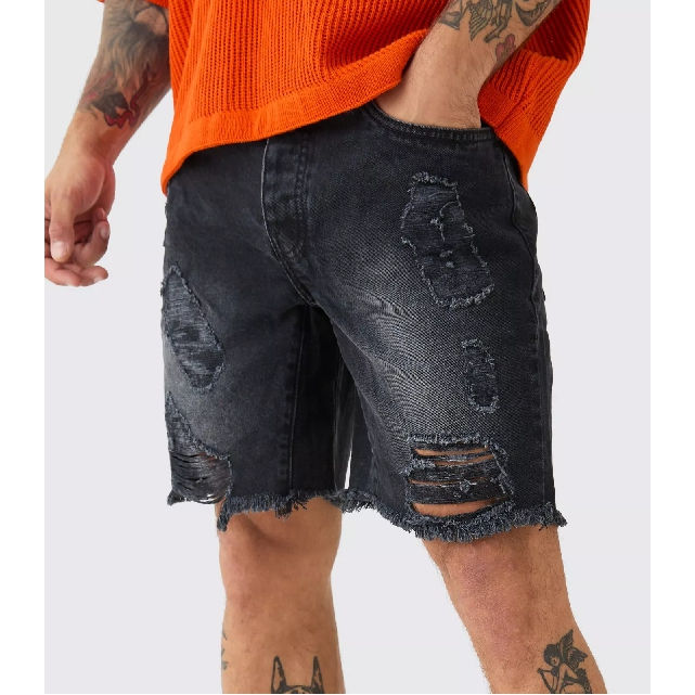 Shorts en jean 100 % denim de haute qualité pour homme, décontractés, respirants, séchage rapide, écologiques, design déchiré, personnalisables avec cordon de serrage