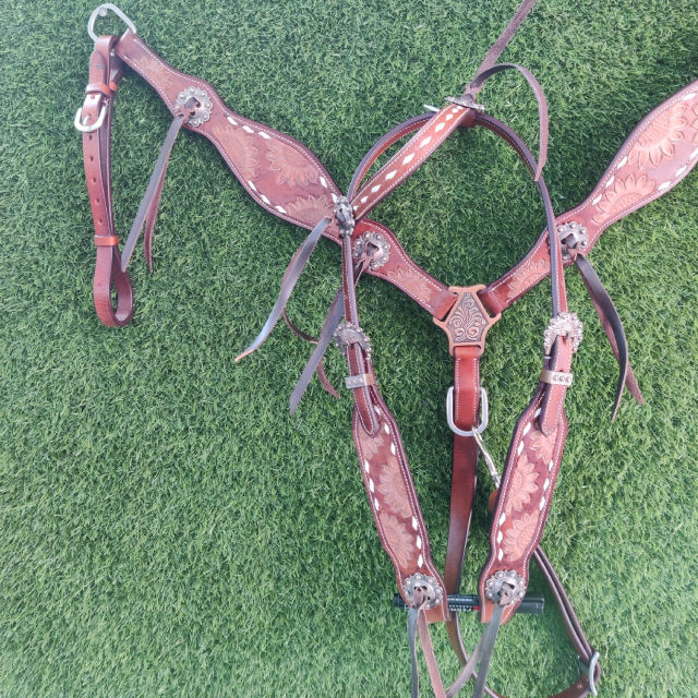 Haute qualité 100% véritable cuir fait à la main Western sculpté serre-tête collier ensemble cheval produits en gros fabricant