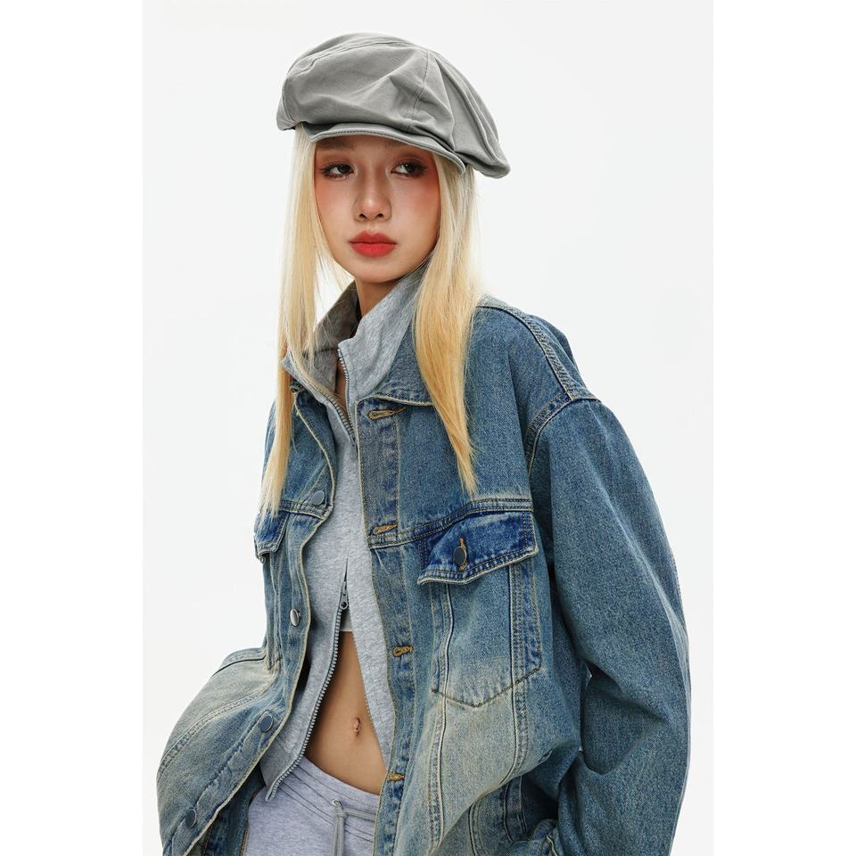 High Quality 100% Poly Unisex Classic Oversized Vintage Washed Jean Outerwear Distressed Trucker Coat Streetwear Denim Jacket