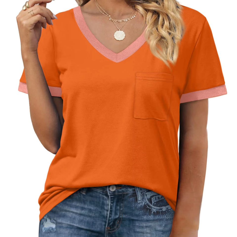 T-shirts décontractés à col en V 100 % polyester de haute qualité pour femmes, grandes tailles, chemisiers unis, motifs personnalisables, anti-boulochage