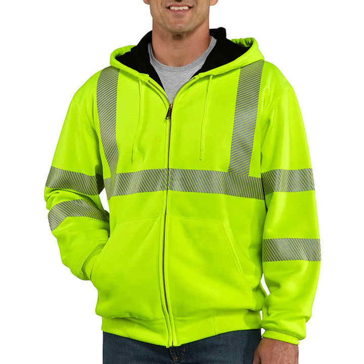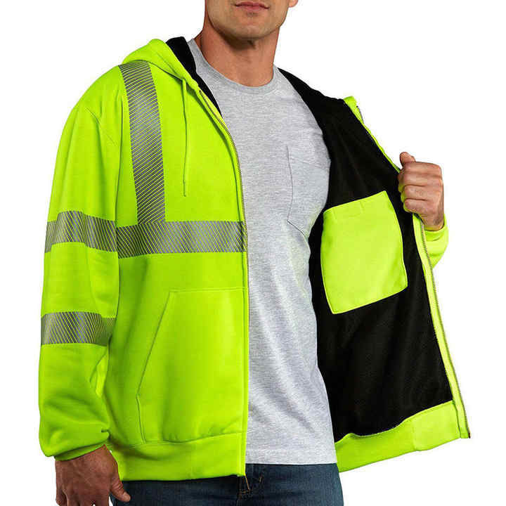 Sweat à capuche haute visibilité personnalisé en polyester 100% de haute qualité, veste de travail réfléchissante avec fermeture éclair, vêtements de travail, grande taille, prix abordable