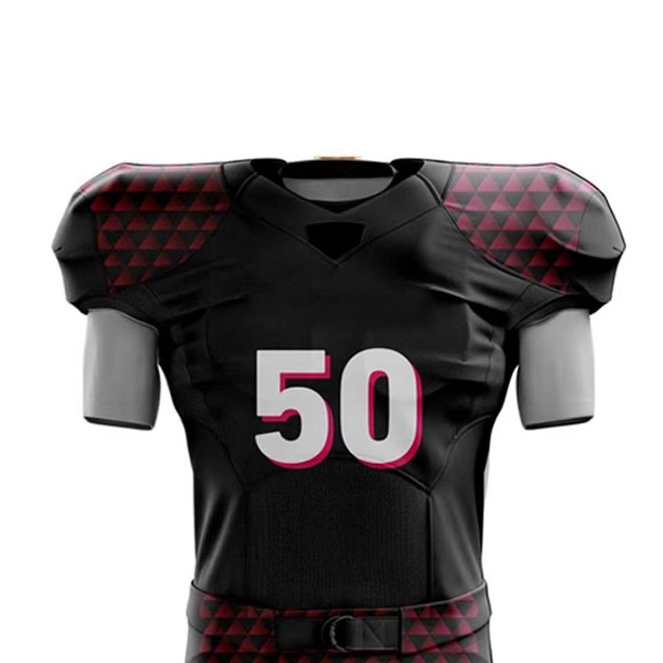 Uniforme de football américain pour hommes de haute qualité 100% polyester, impression de logo personnalisée, impression par sublimation, séchage rapide, respirant