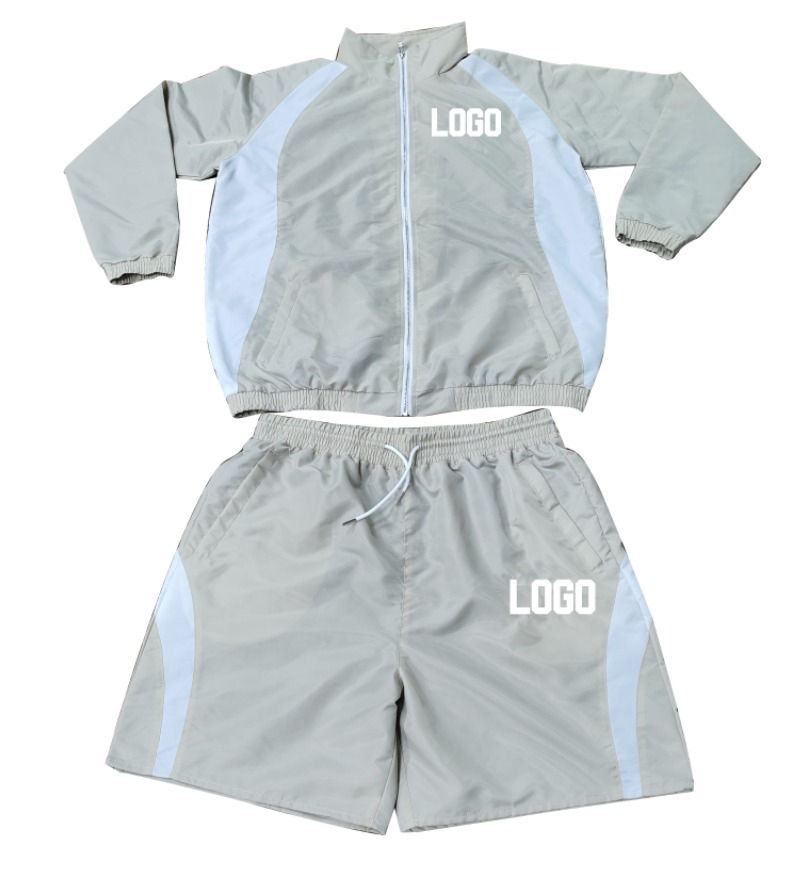 Ensemble short homme deux pièces en polyester respirant de haute qualité, col montant zippé, idéal pour l'entraînement et le streetwear estival