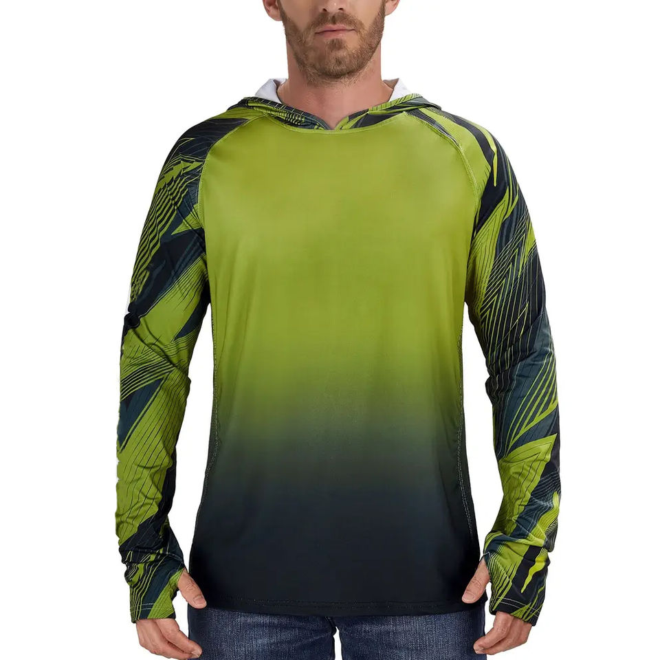 Sweat à capuche de pêche unisexe à manches longues, haute qualité, 100% polyester pur, design de logo personnalisé, UPF 50, imperméable et respirant