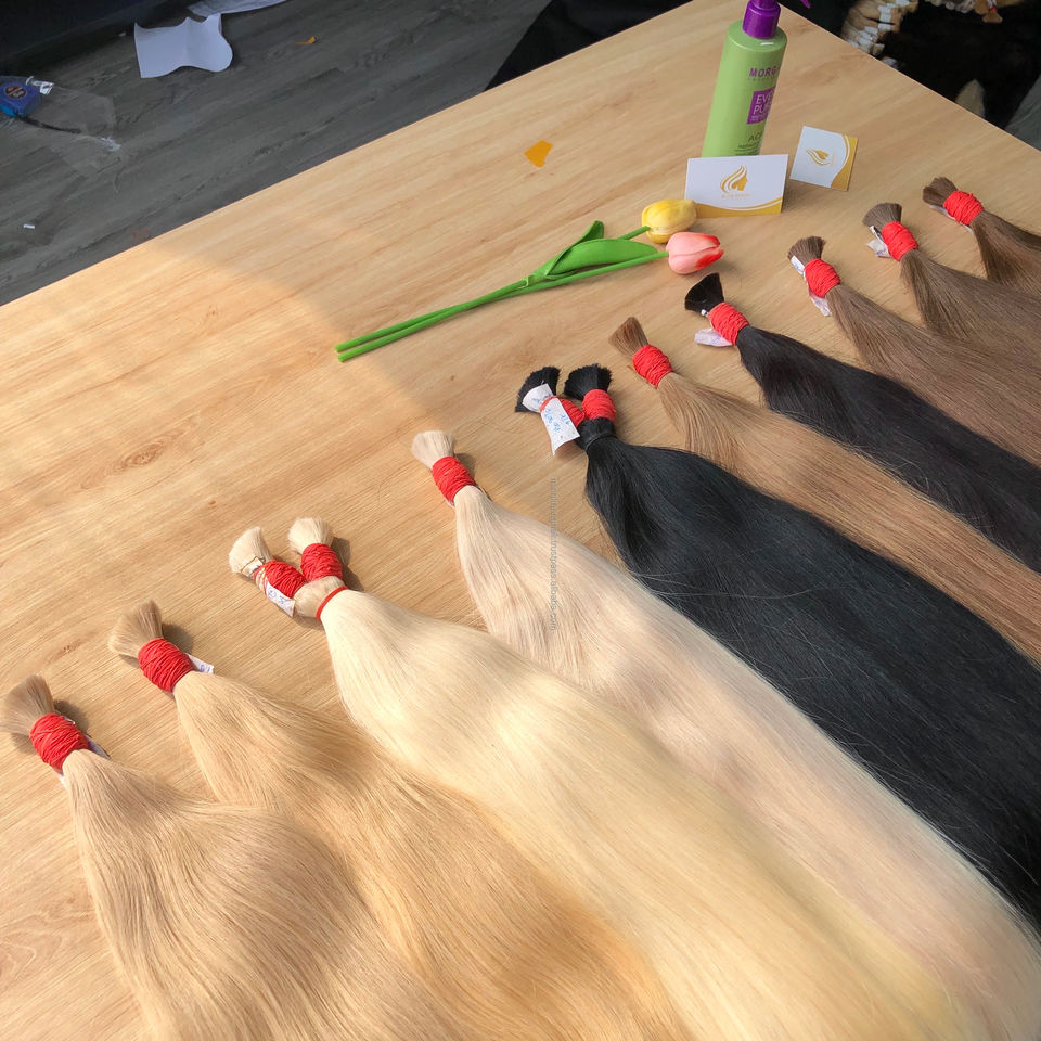Extensions de Cheveux Humains Vierges Non-Remy du Vietnam de Haute Qualité, 100% Naturels, en Vrac, Couleur Unie, Texture Lisse, 100g, Meilleur Prix, Vente en Gros, MOQ 1 Cheveu