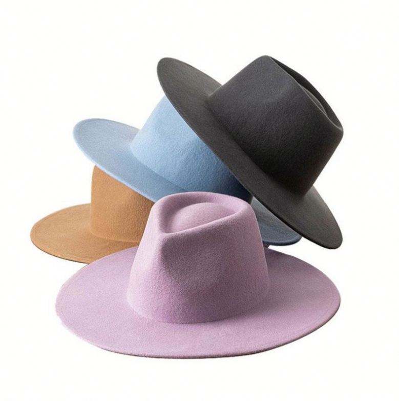 Chapeau Fedora en feutre de laine australienne de haute qualité, 100% laine, hiver, bord large plat de 9,5 cm, style cowboy