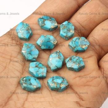 Product name:Natural Blue Copper Turquoise Smooth Hexagon Shape Loose Gemstone