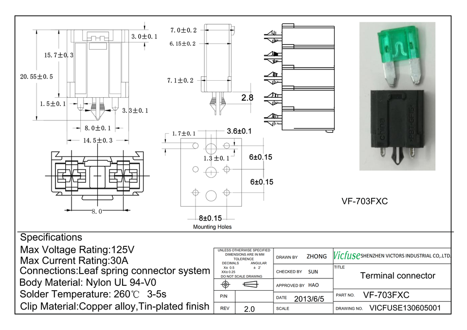 Body Material:Nylon UL94-V0, Clip Material:Copper alloy,Tin-plated finishMatériel