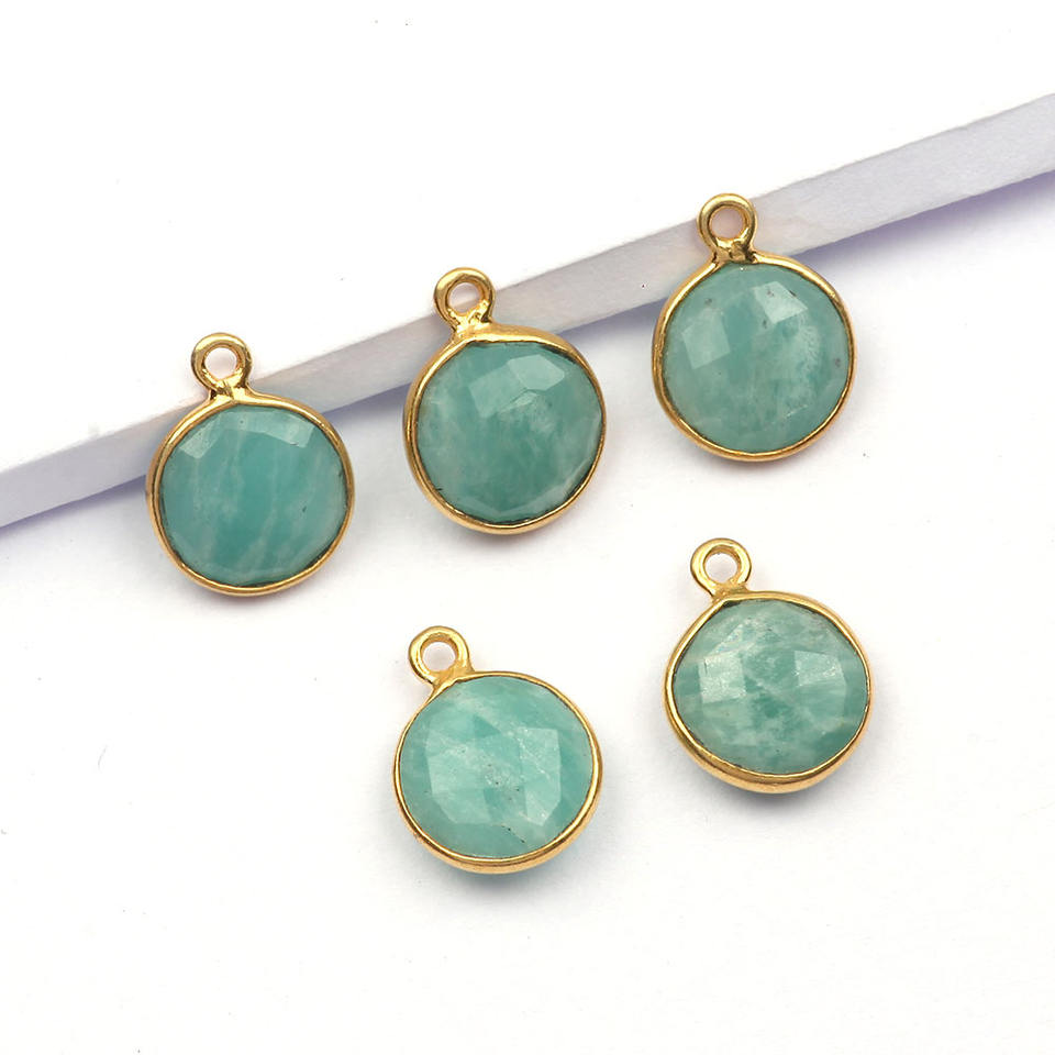 Nom du produit:Amazonite naturelle 12mm argent plaqué or pendentif lunette de pierres précieuses
